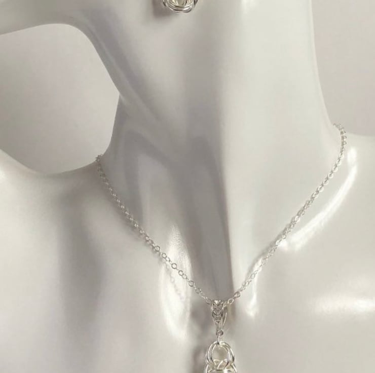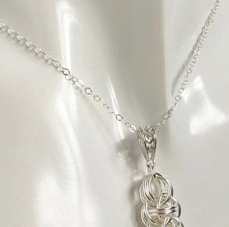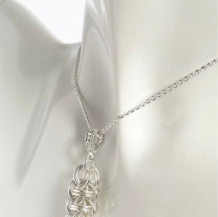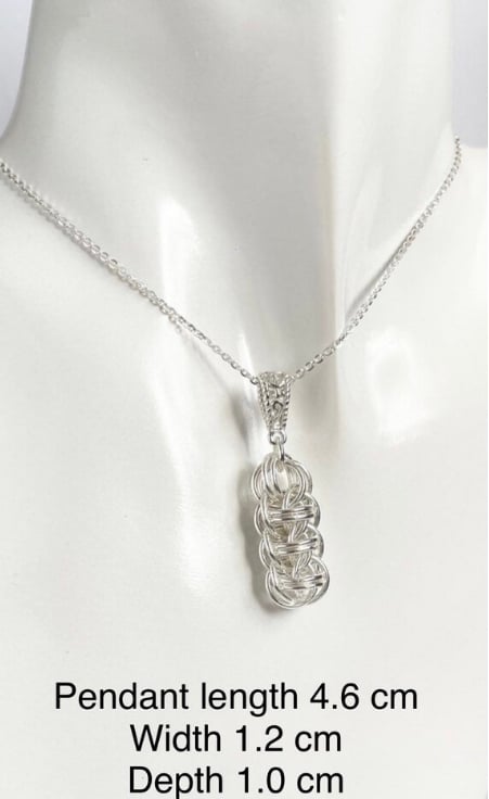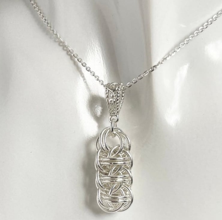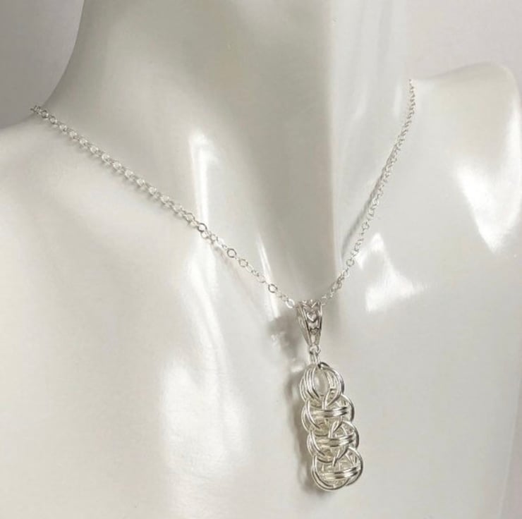 The pendant has been made by linking Sterling Silver rings to create this intricate weave.