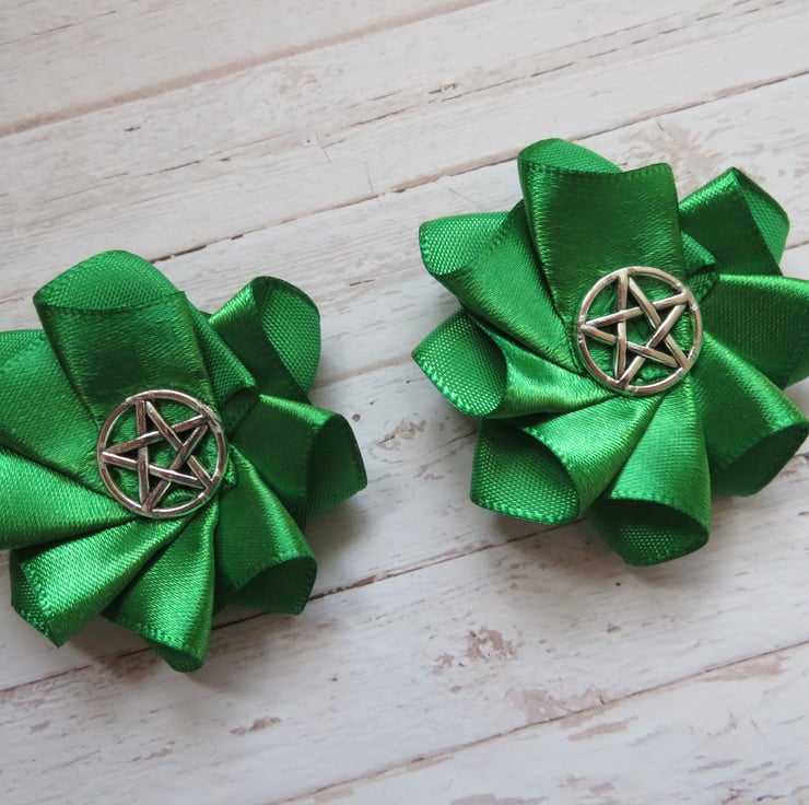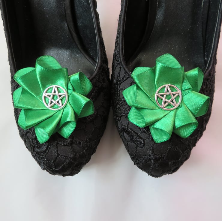 These pretty Emerald Green Pentagram Shoe Clips are made to order and take a 5-7 days, plus delivery time.