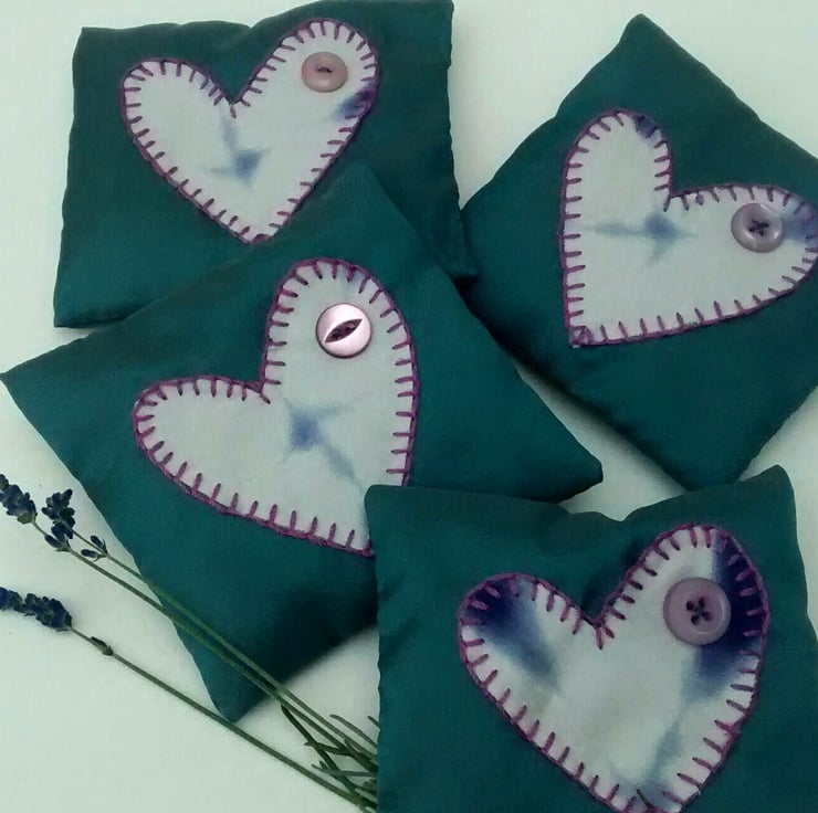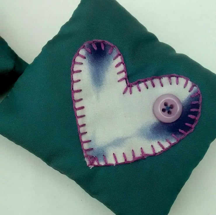 Handmade from my stash of fabric scraps and featuring my appliqued heart design.