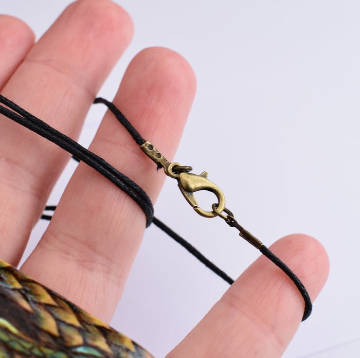 -It comes with a free 1mm waxed cotton cord with a silver tone lobster clasp fasten. This is approx 18" long. Other lengths are available or it can be sent without the clasp, just to tie.
