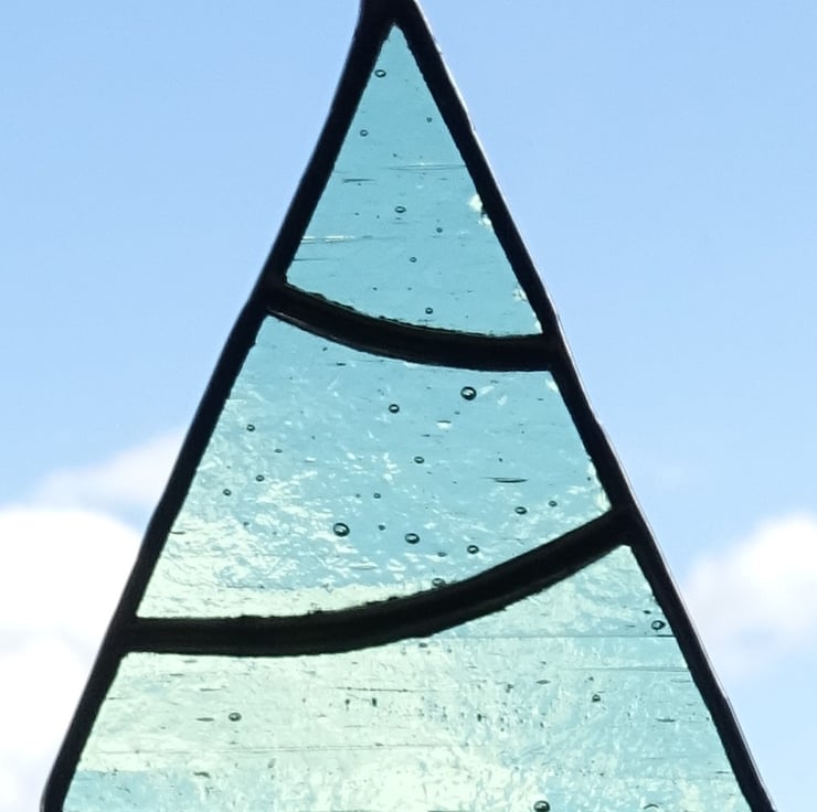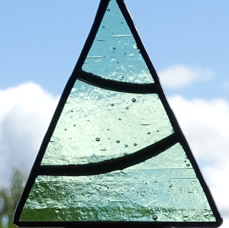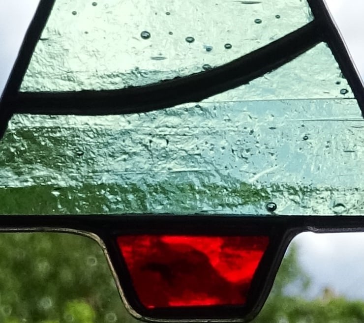 This stained glass Christmas Tree will look lovely on your Christmas tree this year. It is hand-crafted using the Tiffany method of stained glass making. We have used pale green Kokomo Glass and a bright red for the base. Each piece of glass is hand cut and shaped and the edges of the glass are wrapped in copper foil which is burnished to the glass. The pieces are then soldered together to form the tree. We hand polish and finish it with a hand tied loop so it is ready to hang on your tree or in a place where it will catch the light.