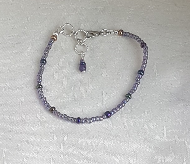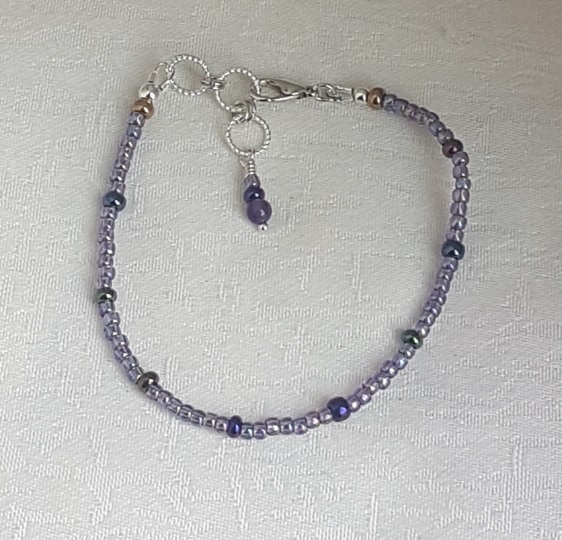 Pretty Purple Small Bead Bracelet. A beautiful bracelet made from 8/0 Toho Japanese seed beads and some slightly larger metallic tone beads. The bracelet is a lovely simple design and a great gift for anyone who loves purple tones and subtle jewellery.