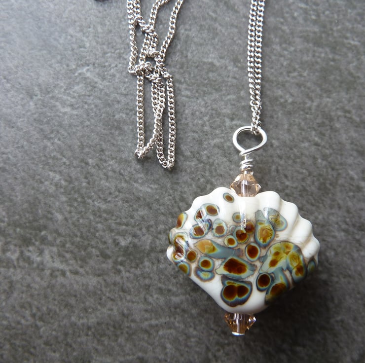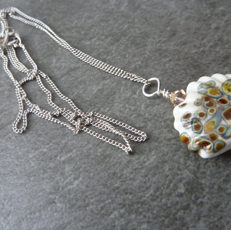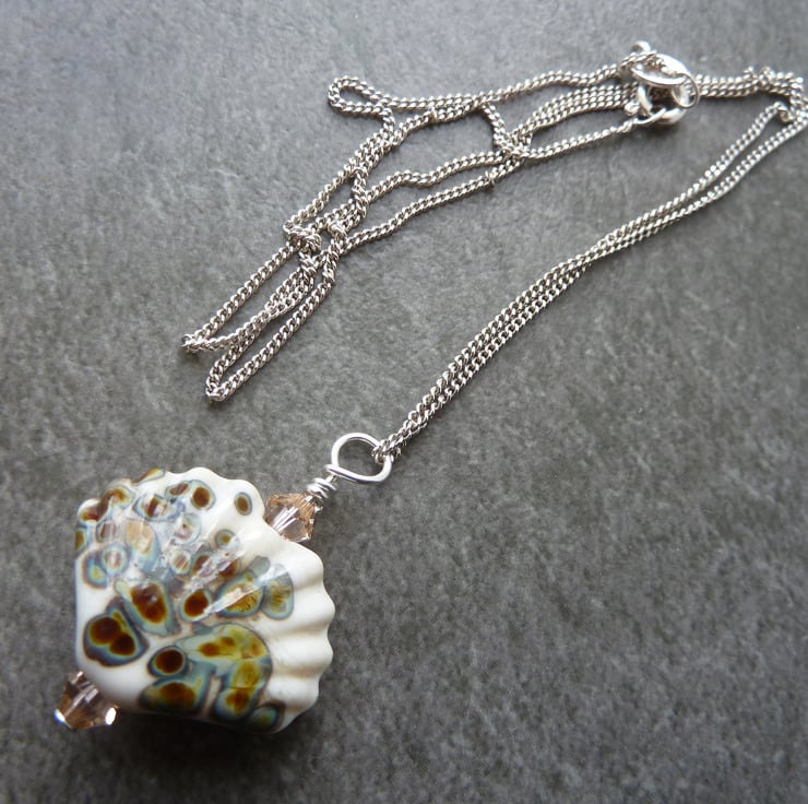 A 18" sterling silver chain strung with a handmade lampwork glass sea shell bead.