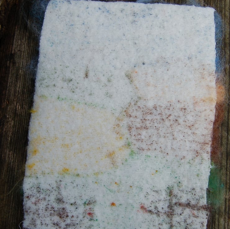Worked using the needle felting method on a piece of reclaimed wool blanket.