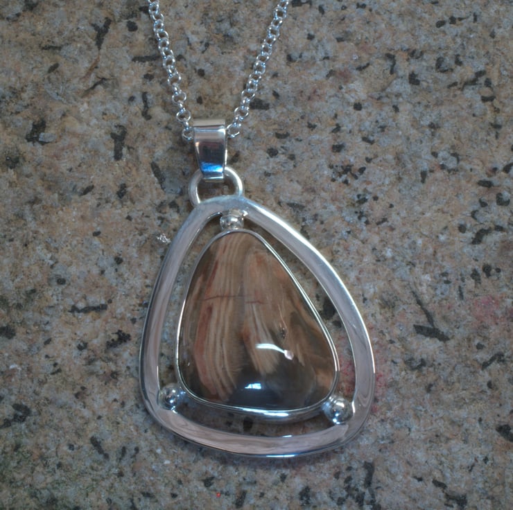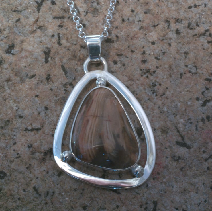 Asymmetric silver pendant set with an agate.Approx 40 x 32 mm
