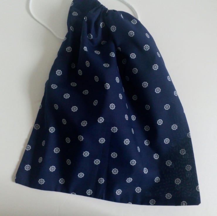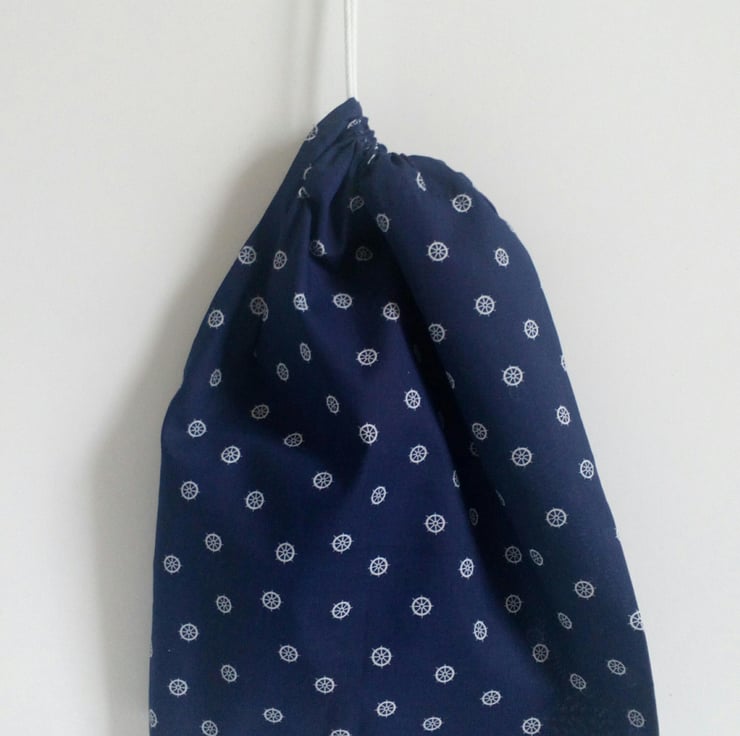 P.E bag, toy storage bag, back to school, drawstring bag, ships wheel