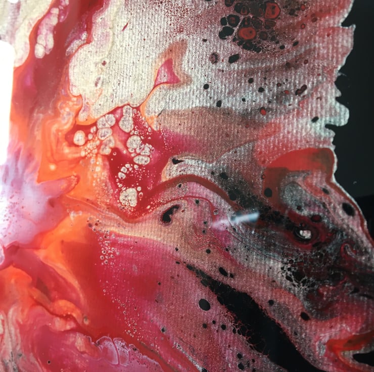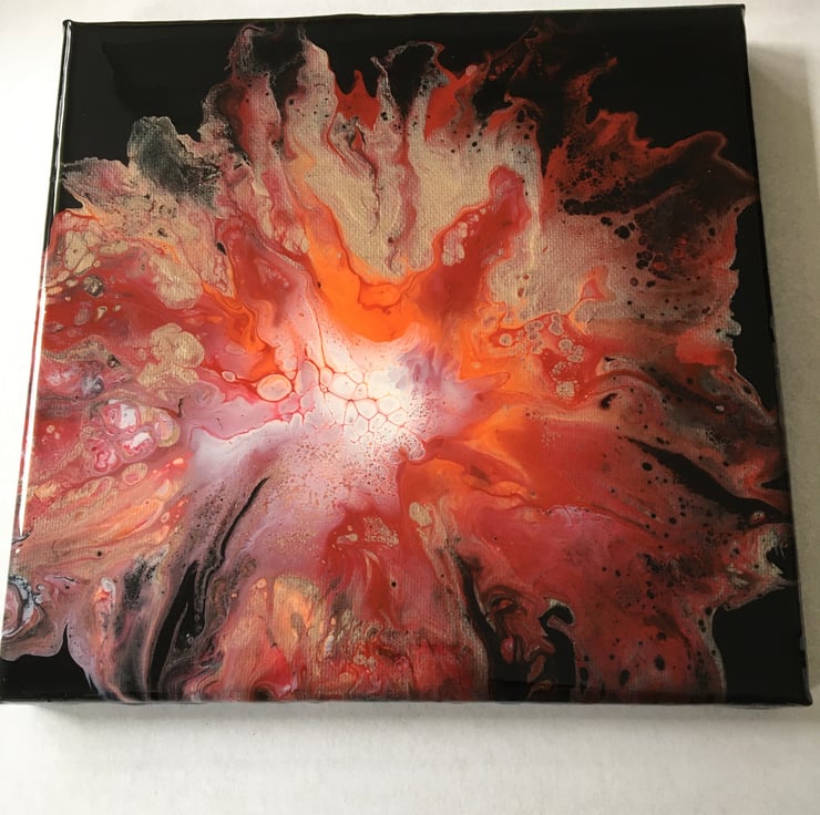 Original an acrylic dutch pour painting on (20cm x20cm) canvas , one of a kind, abstract flower on black background, finished with protective like a glass epoxy resin.