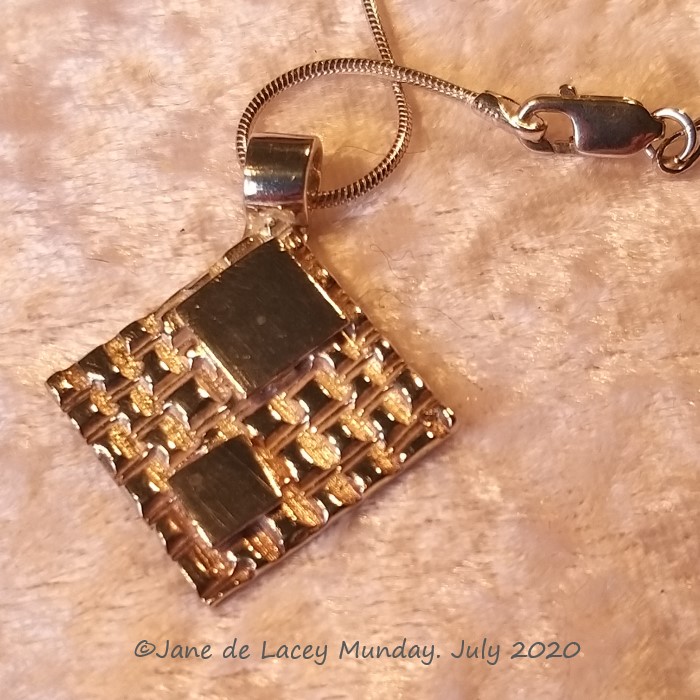 I love the combination of high shine and low shine, and attempting to get a mirror shine as an accent, and this pendant covered all of that. The low part of the texture gives the low shine accent, the raised part of the texture, the high shine, and the two diamond shapes a higher shine. I won't say that I achieved a full mirror finish, but it was a good attempt by hand, which I was happy with.