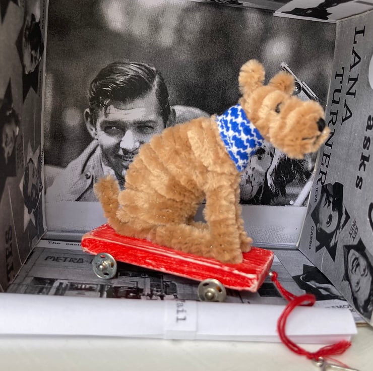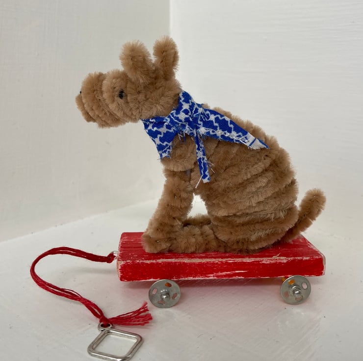 Description OOAK sculptured miniature terrier on wheels. All my animals are hand finished with eyes and noses and, if needed, wool whiskers!! The wheels are for decorative purposes only and do not turn. My animals are not toys but are designed as small pieces of art for display on a shelf somewhere where they will be admired and loved. Each little guy or gal will come boxed and with a little story about their past exploits!