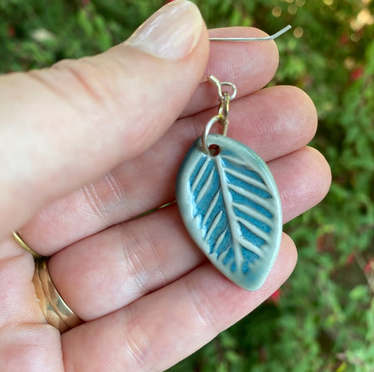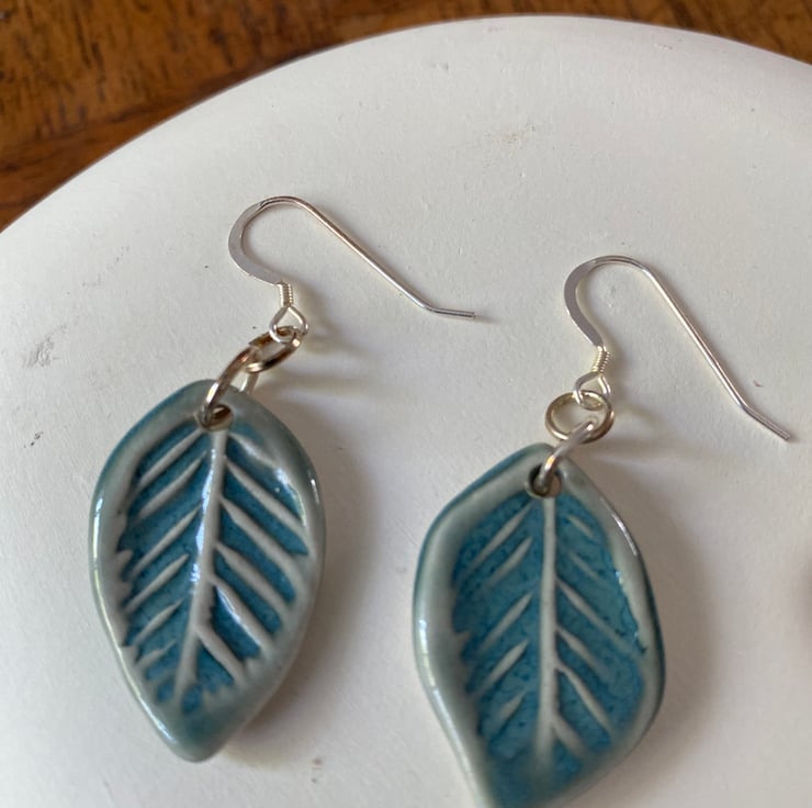 Lovely handmade porcelain clay earrings made with my own stamp and glazed and fired with a jade green glaze. Sterling silver ear wires and supplied with a recycled box.