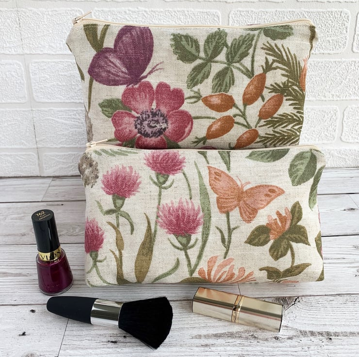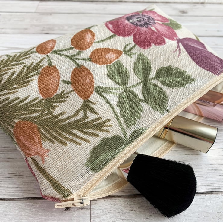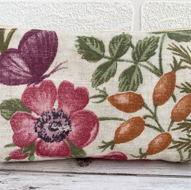 This pretty and spacious pouch can be used to store your cosmetics or could be used as a pencil case. With its delightful pattern, it would make a lovely gift, particularly for anyone who loves wild flowers, butterflies and nature.