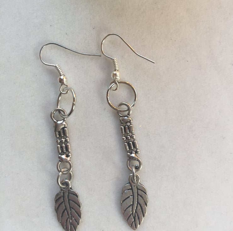 Double sided silver coloured feather on a chainmail link style chain. Retro. Steampunk. Medieval. Length of chainmail approx 20mm with jump rings. Longer length available on other listings. Feather dimensions approx 15mm x 8mm. Recycled from old jewellery. All cleaned and sterilised with new hypoallergenic fish hooks added.