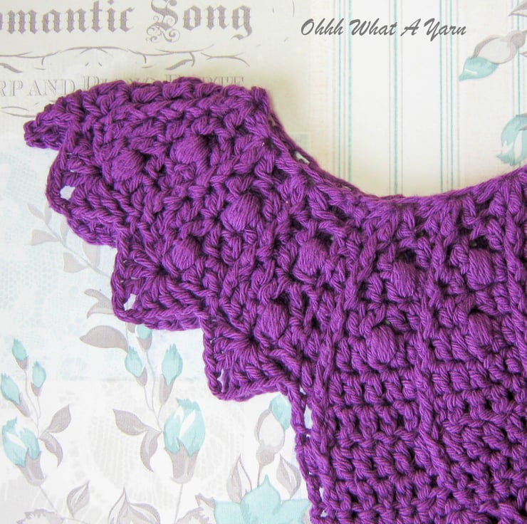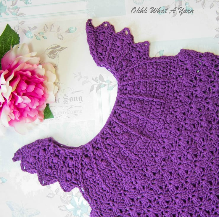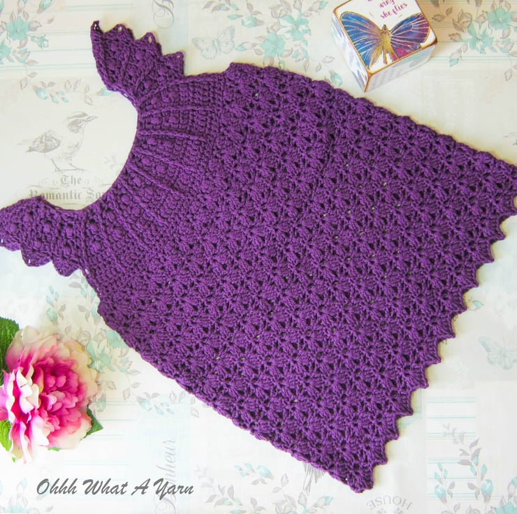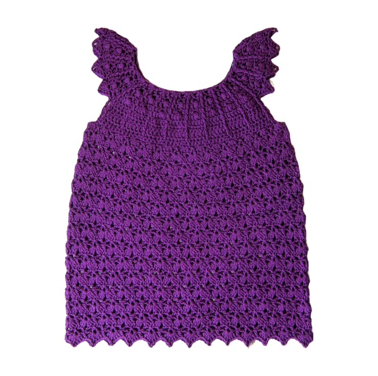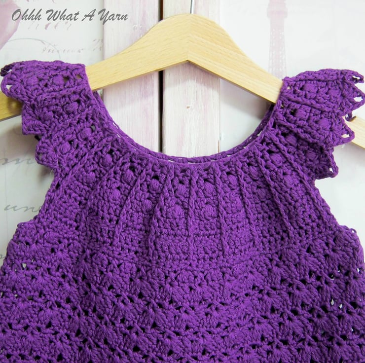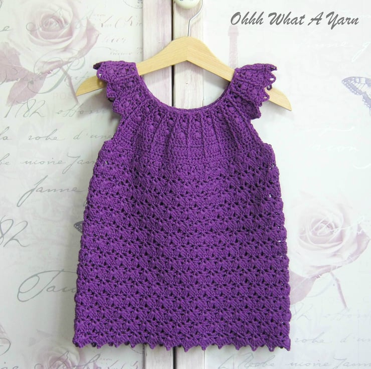 This gorgeous purple toddler sun dress has been crocheted using gorgeous Drops lightweight 4 ply 100% cotton yarn.