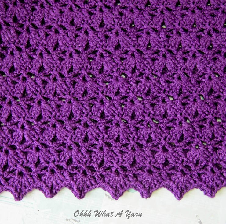 The body of the dress has a lovely shell and lacy pattern and it has the same decorative shell edging along the bottom.
