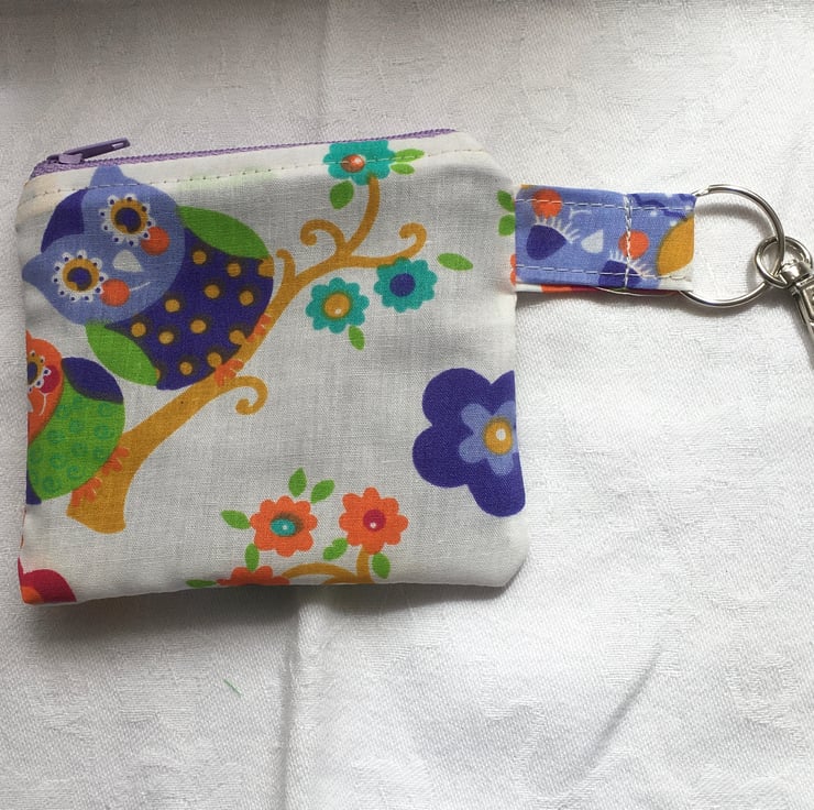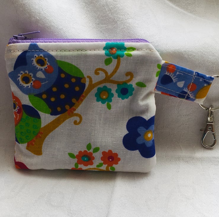 Here's a cute small coin zip purse, with clip. A great addition to your accessories. This small zip purse is great for holding your loose change, or your cards and clipping inside your bag. Another use to clip onto belt loop to keep your keys in, when out walking or to find easily in your bag. A great small zip purse with the addition of a clip for added security.