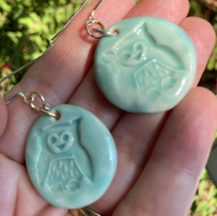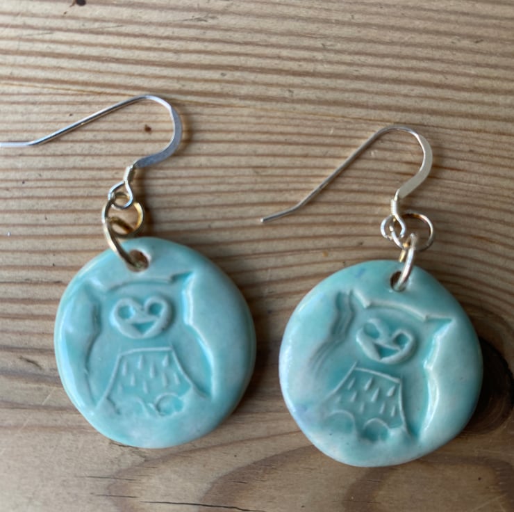 Lovely handmade porcelain clay earrings made with my own stamp and glazed and fired with a jade green glaze. Sterling silver ear wires and supplied with a recycled box.