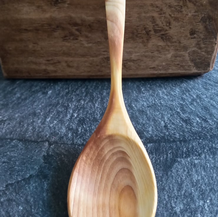 Unique, handcrafted wooden serving spoon, made from ethically sourced Yew. This is a unique, one of a kind spoon crafted with care, and attention to detail, following the branch's own natural crank.