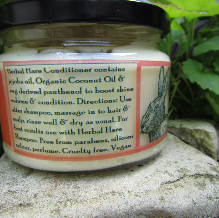 Herbal Hare Conditioner has some amazing ingredients, naturally these do NOT include parabens, colour or artificial fragrance - just lovely ingredients that do the job & do it well. Coconut oil is one of the few oils that actually penetrates the hair shaft, providing nourishment within & helps with body & manageability. Jojoba oil is chemically very similar to human sebum and SPF of 5 - it has a long tradition of being used therapeutically in skin and hair care. Last but by no means least is Panthenol that detangles wonderfully, improves thickness & gives a luxurious shine.