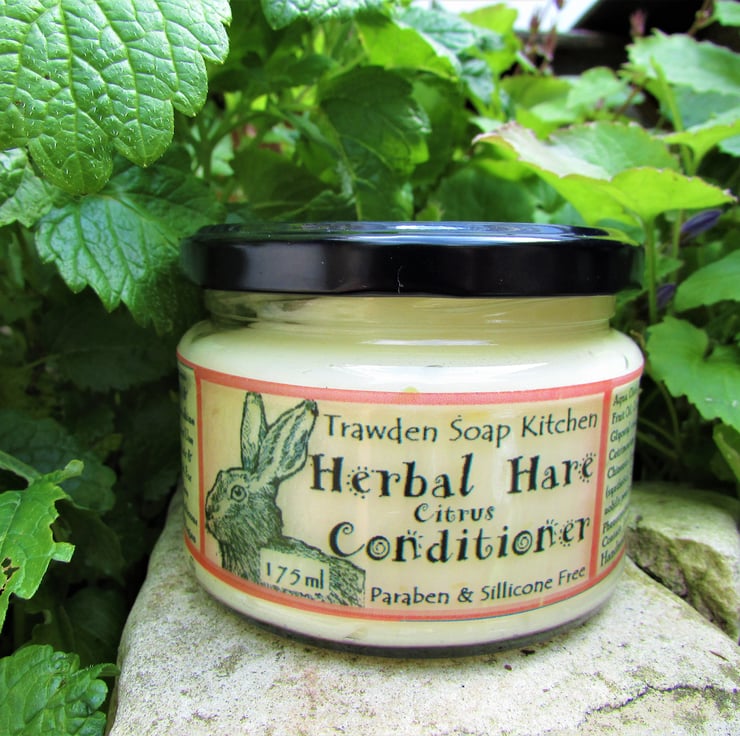 Herbal Hare Care Conditioner, Citrus Version, with Tangerine & Grapefruit essential oils. 280ml glass jar filled.