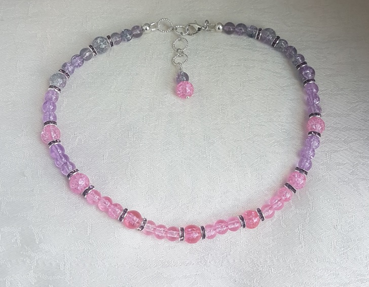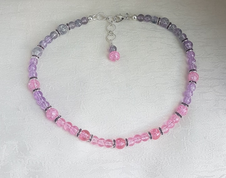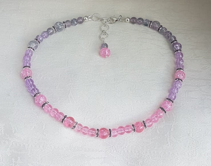 Fabulous Pink and lilac choker necklace. Made with gorgeous crackle glass beads in candy colours. Great as a gift or as a treat for yourself.