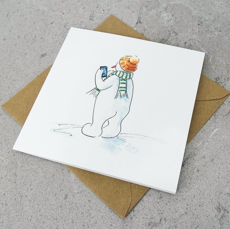 This ecofriendly Snowman card Christmas Phone has been printed using my own original illustration. It has been printed on 100% recycled felt white 270g card which has a lovely textured finish.