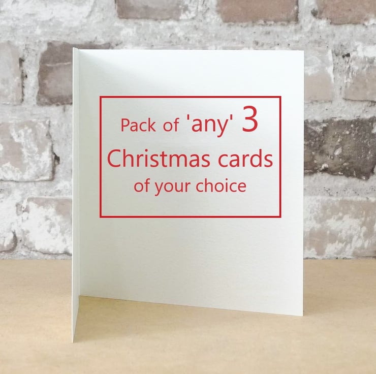 Choose any 3 cards from my Christmas collection and please leave the title of each card required when you order in the note to seller or message with their title's if they won't fit in the space provided.