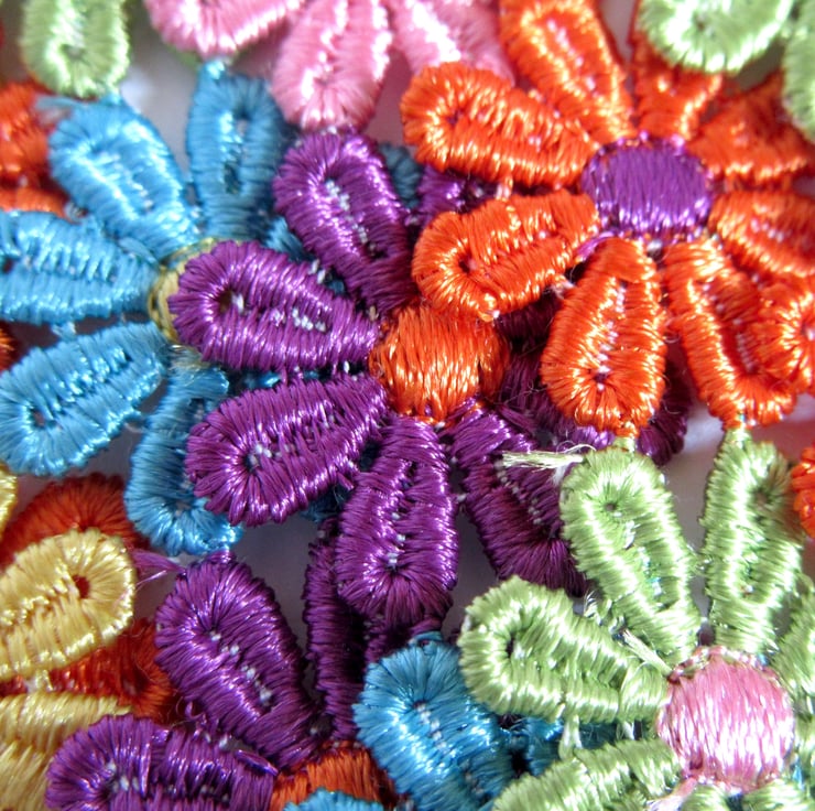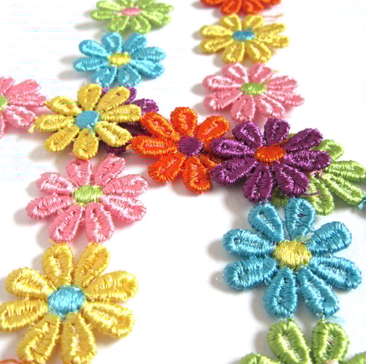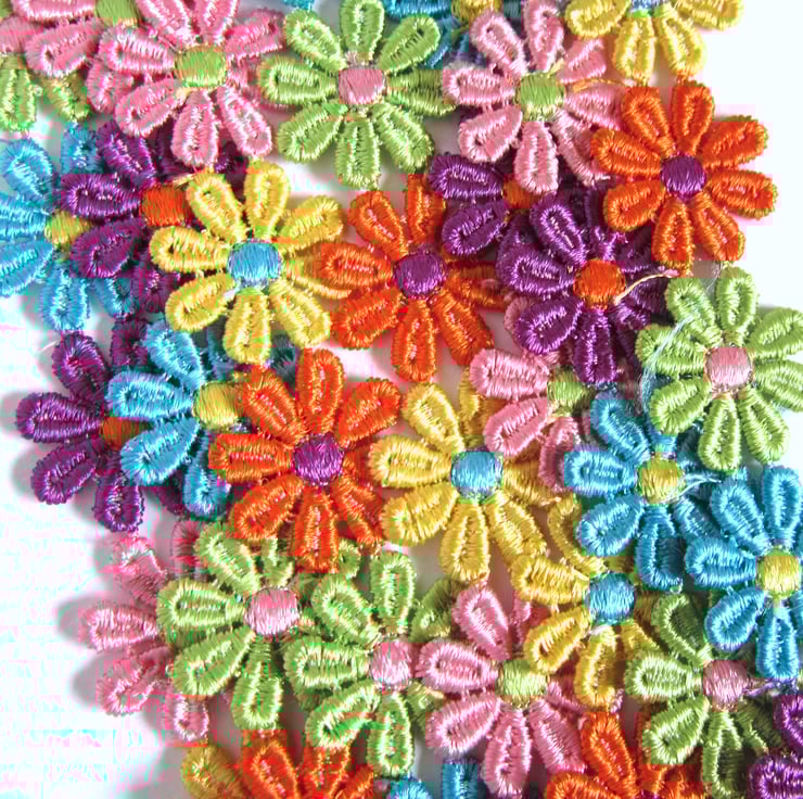 Approx 35 flowers per yard (36 inches) / 19 flowers per 50cm.