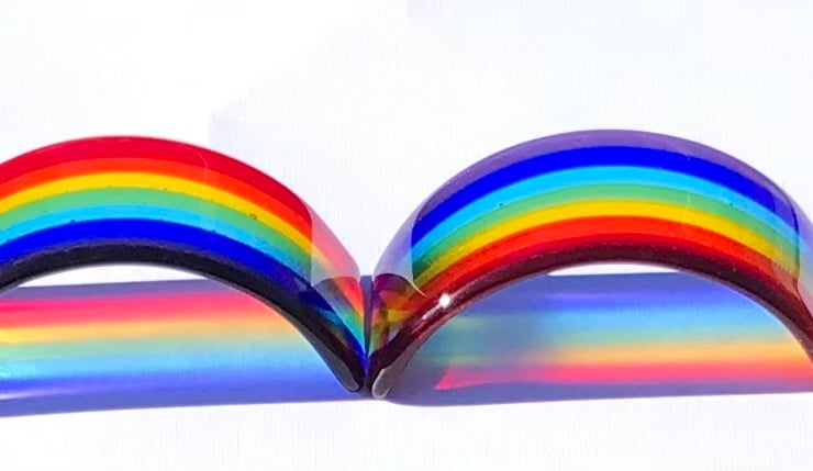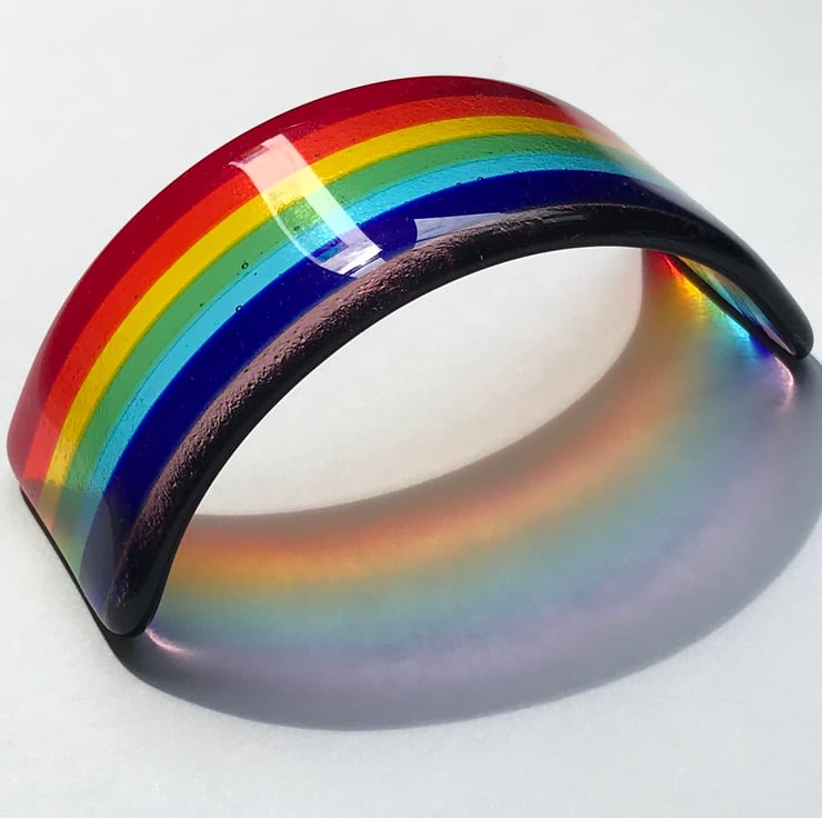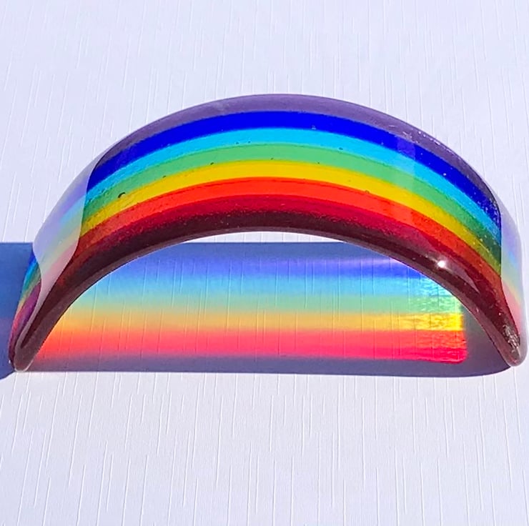 Your own personal rainbow made from carefully cut coloured glass which is fused twice in my kiln to form this piece. It can stand alone as a sculpture or used as a candle screen. The piece measures approximately 12cm x 4cm x 6cm. Price includes postage and packing.