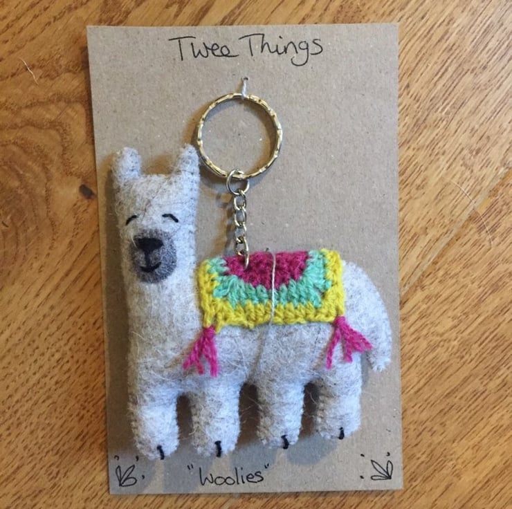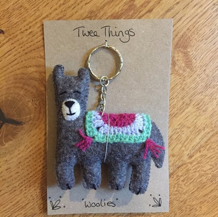 Super cute Llama or Alpaca keyring bag charm, hand sewn in 100% wool felt with lambs wool crochet blanket.