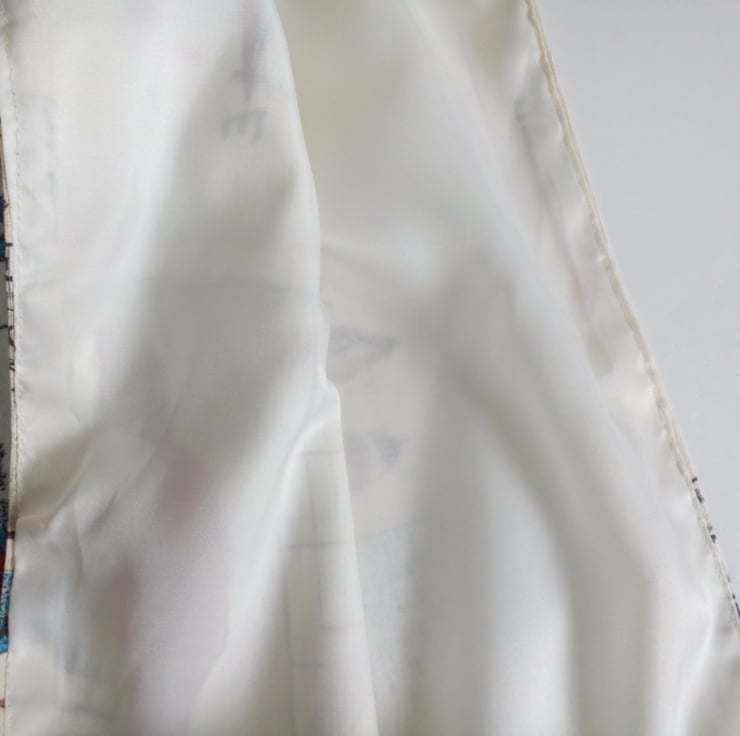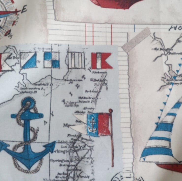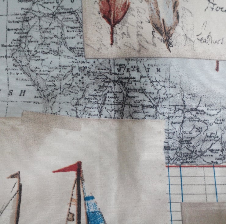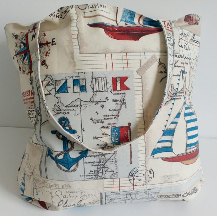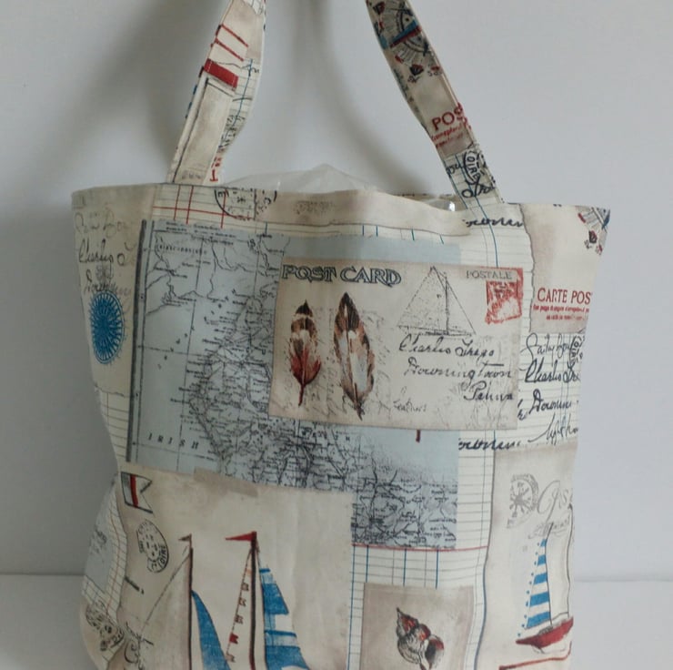 This is a shopping bag/tote with a Nautical/seaside print and a cream lining.