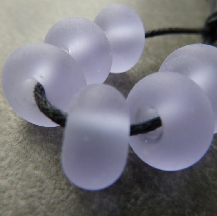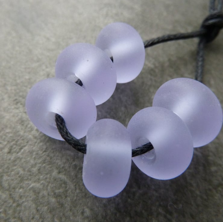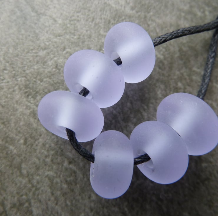 A set of 6 lampwork glass spacer beads made with lilac glass and tumbled to give a frosted finish.