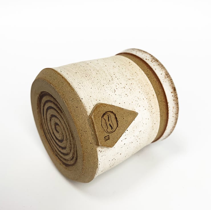 The perfect size for your espresso (or shot of alcohol, no one is judging you here), these tiny cups are wheel thrown and finished off with TinyThorin's trademark decorative stamp.