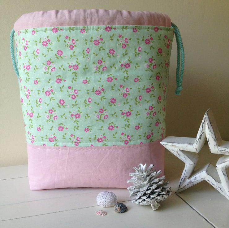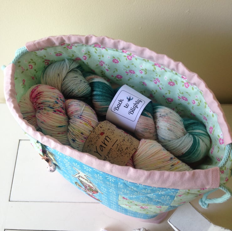 This project bag has been made with love and care by me out of beautiful cotton fabric and linen.