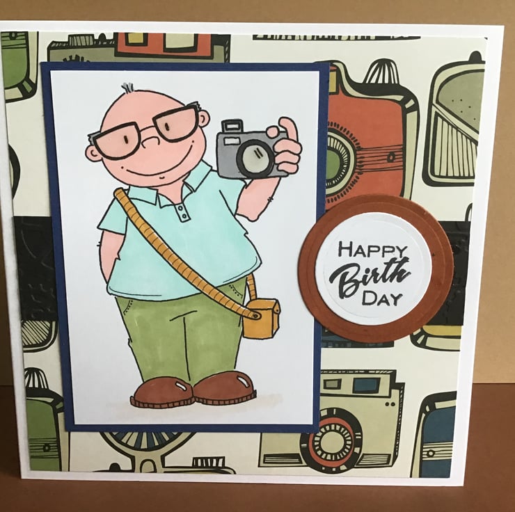 This is a digi image and has been hand coloured with Promarkers. The backing paper is cameras too.