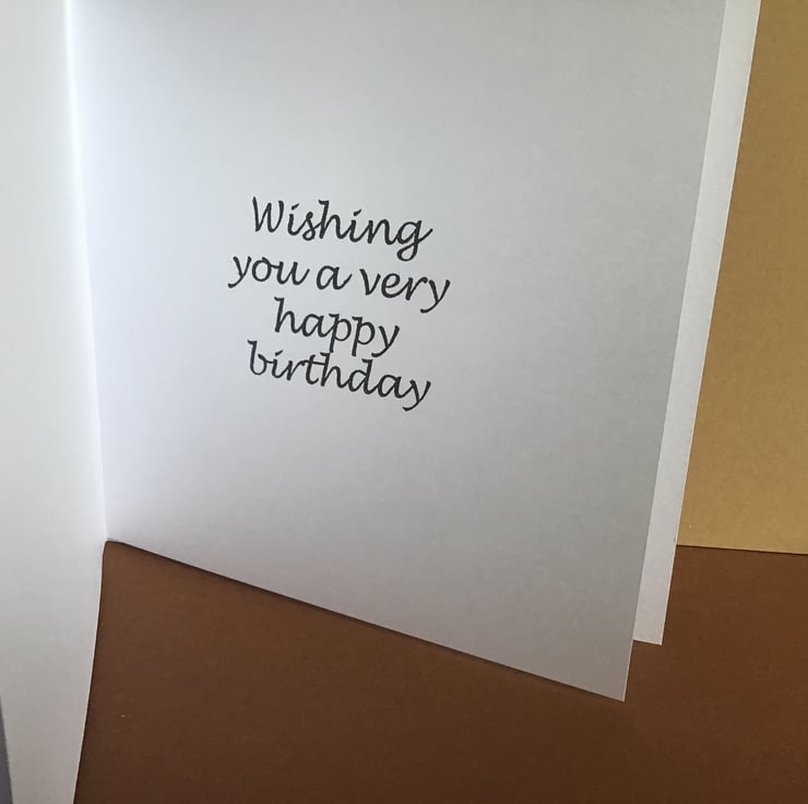 The card measures 15 cm square and is on white card stock with a white envelope and comes sealed in a cello bag.