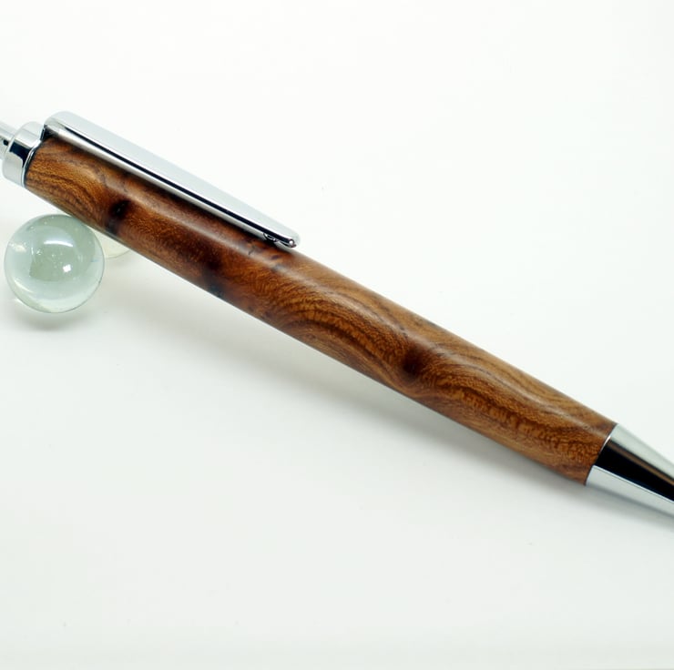 This pen was handturned by me in my workshop in suffolk, the metal parts are chrome finish, Included in the price is a black card presentation box & Protective velvet sleeve