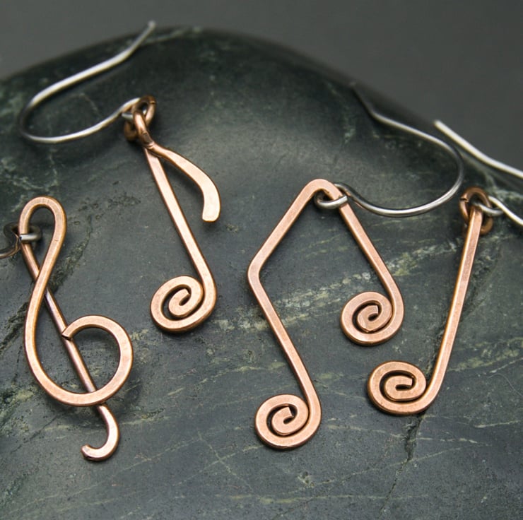 These little eighth note earrings have been formed from copper wire, & would make a great gift for the music lover in your life! I've formed little quavers, hammered them flat, oxidised the copper & then polished them. The hooks are handmade from niobium - an unalloyed metal which is great for those with a metal sensitivity.