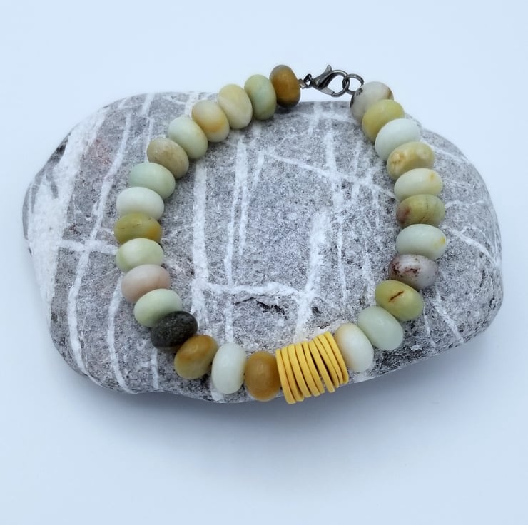 Bracelet Amazonite Rondelle Gemstones & Ceramic Beads Lobster Clasp