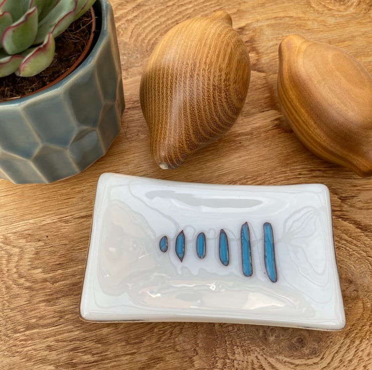 It measures approx 12.5cm by 7.5cm and can be used as a soap dish as shown in the photos, as a trinket dish, to hold tea lights or the teaspoon to make your cuppa or as a stylish sushi dish with other items of the same colour combination in my shop.