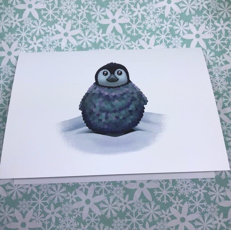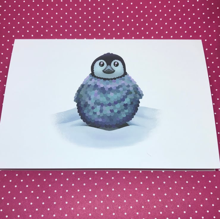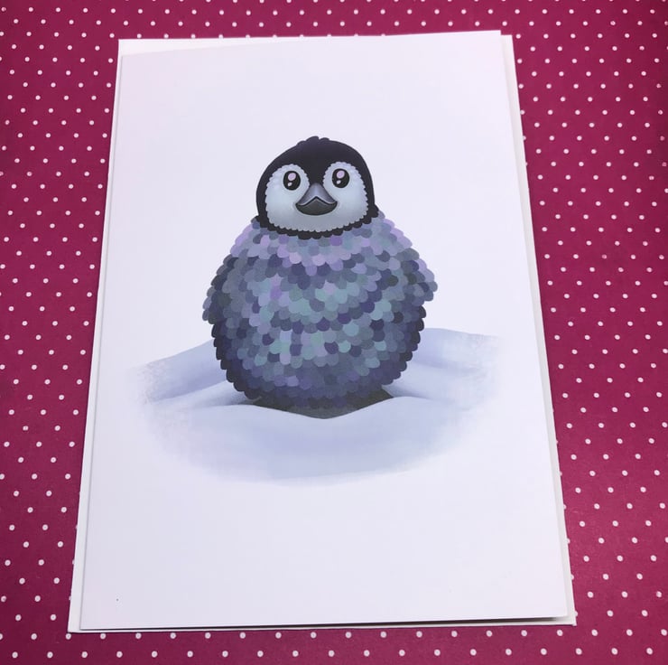 A cute baby penguin blank greeting card with white envelope by DuffleCat Prints (Damian Case)