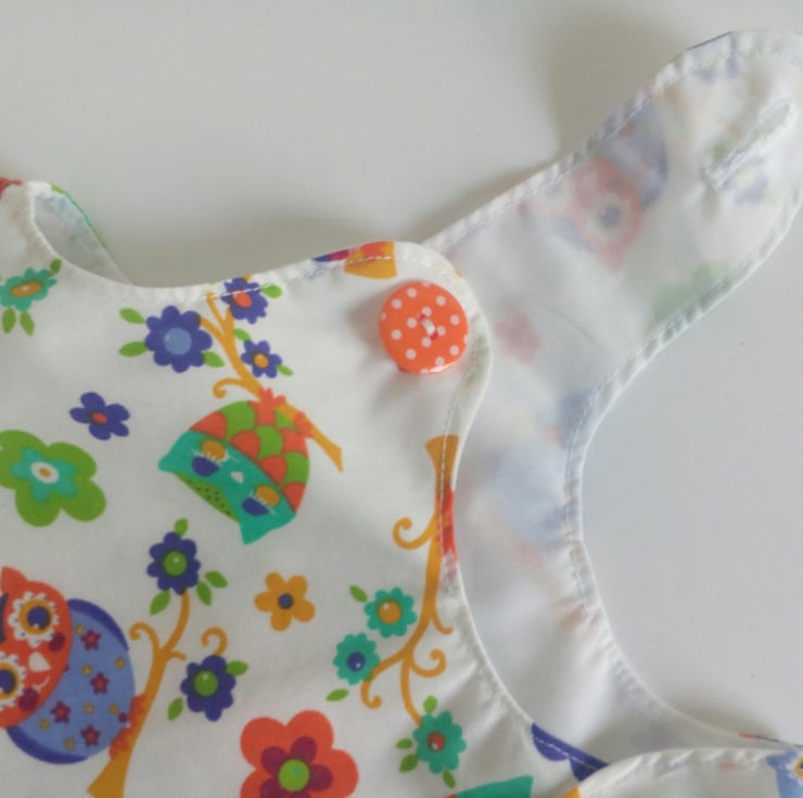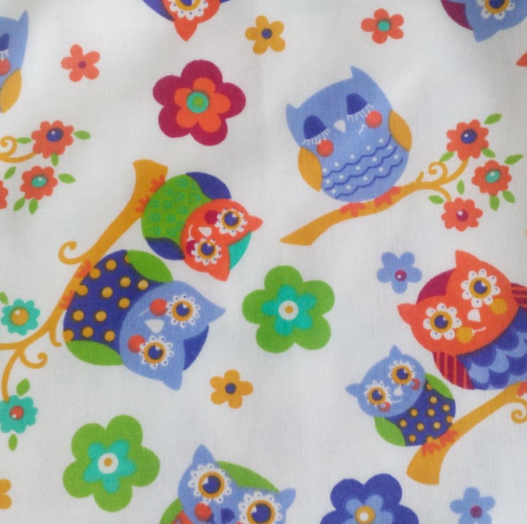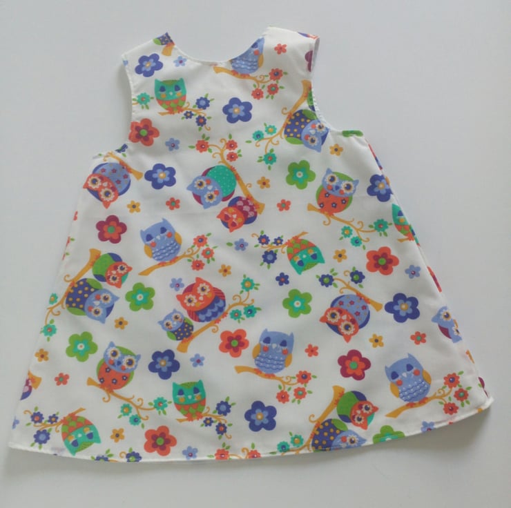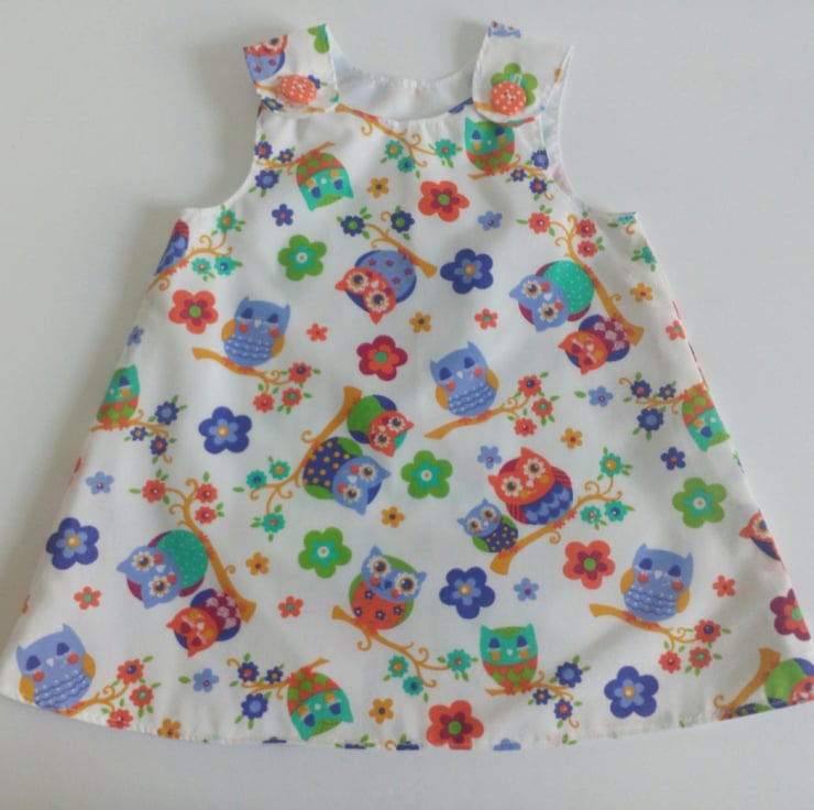 A line style dress/pinafore with an Owl design. Fully lined in white polycotton.