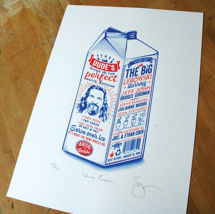 The Big Lebowski 'White Russian Hand Pulled Limited Edition Screen Print