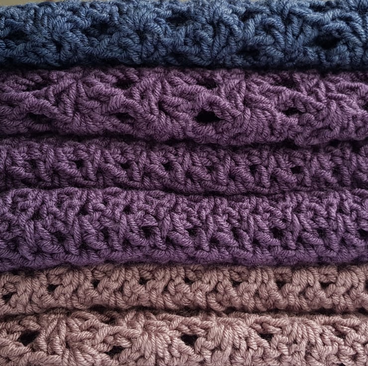 Available in blue, purple, mink