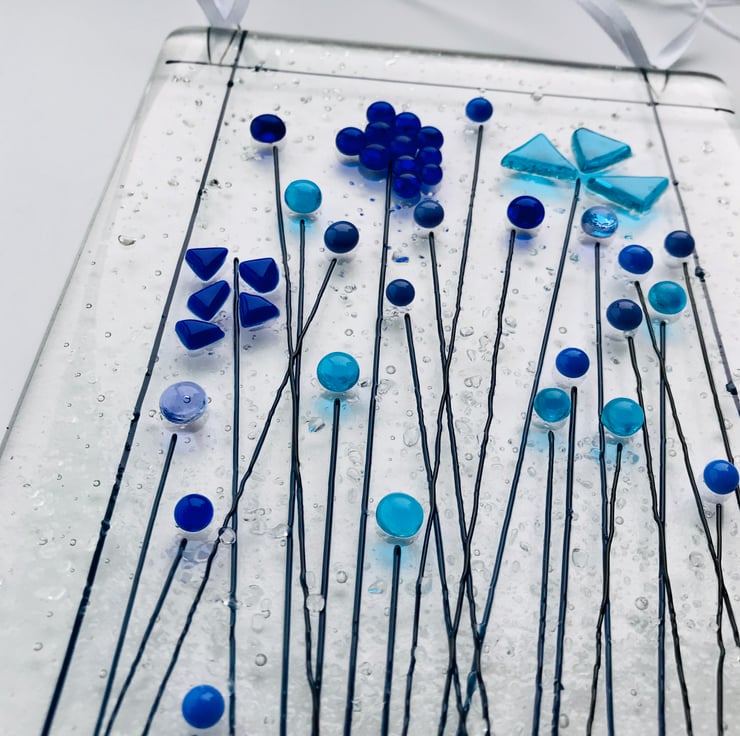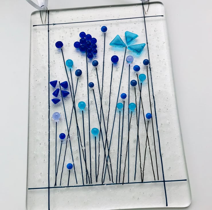 This wall hanging is inspired by wild flowers and is handmade by me in my Yorkshire studio. It is very pretty especially when the glass glints in the sun.