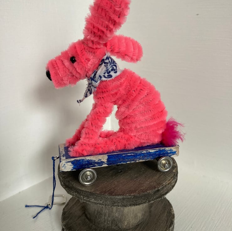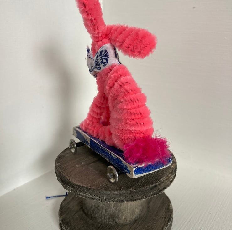 OOAK sculptured miniature rabbit on a pull along wooden trolley with wheels. All my animals are hand finished with eyes and noses and ,if needed, wool whiskers! The wheels are for decorative purposes only and do not turn. My animals are not toys but are designed as small pieces of art for display on a shelf - somewhere where they will be admired and loved. Each little guy or gal will come boxed and with a little story about their past exploits!