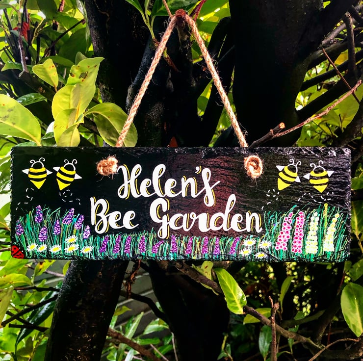 Personalised with the name(s) or wording required, please also let me know what other details or decoration you wish to feature on your slate plaque i.e. ladybird, bee, butterfly, watering can, sun, flowers etc - or something else you would like making this gift completley bespoke for you! If you would like me to send a photo of what is required, that would be great aswell as it will give me more specific detail.