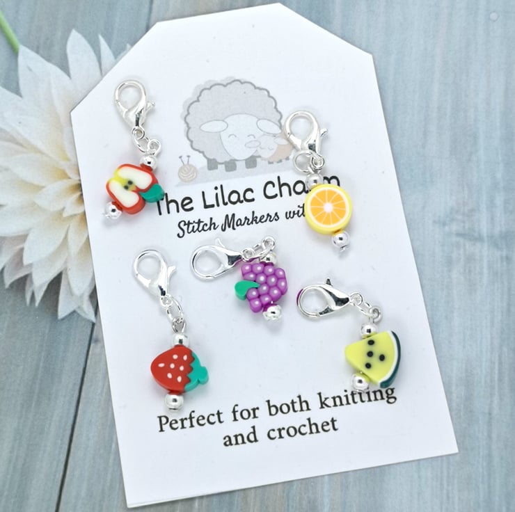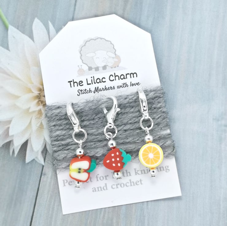 Fruit Salad Stitch Markers. Perfect for all your knitting and crochet projects.