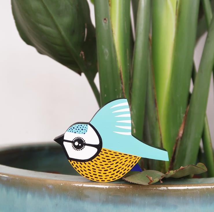 This miniature bird art is fully made by hands with love and huge attention to details. Made of pine wood & hand painted with acrylic paints. Varnished - semi gloss finish. Back is clear wood.