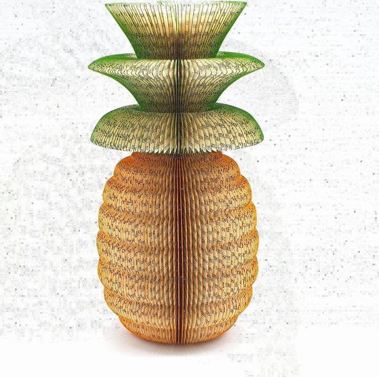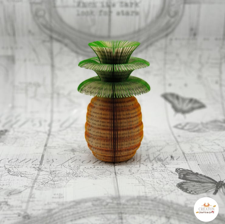 The Pineapple shaped paper fruit is handmade from a random book that I have in stock (destined for land fill, can't have that so I reclaimed them and gave them a new lease of life.)