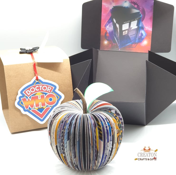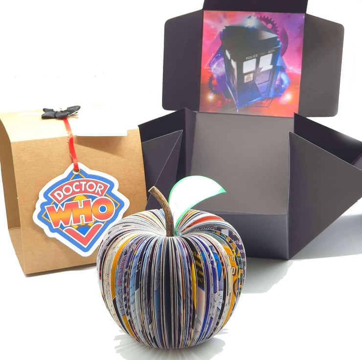A stunning Book Apple made from a Dr Who Annual. (Each apple will vary depending on the annual used)